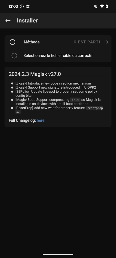 La procédure consiste pour rooter le téléphone consiste à patcher avec magisk le contenu d’une de ses partitions.
