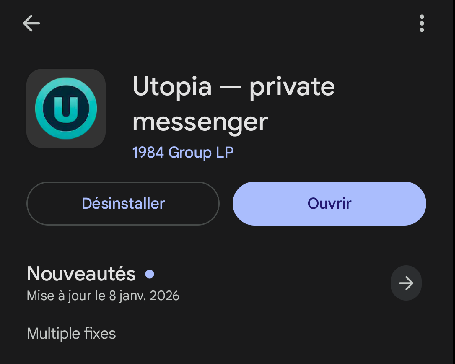 Utopia est une application offrant une fonctionnalité de messagerie instantanée et d’appels vocaux, mais proposant aussi des boucles comparables aux à celles de telegram, ainsi que des services en lien avec les cryptomonnaies.