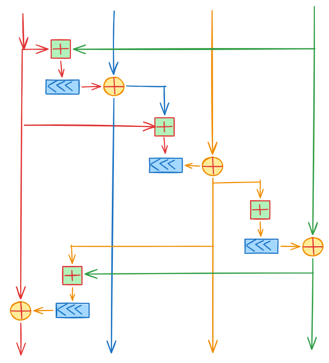 Son design est très simple, puisqu’il n’utilise que trois opérations, toutes sur des entiers de 32 bits :