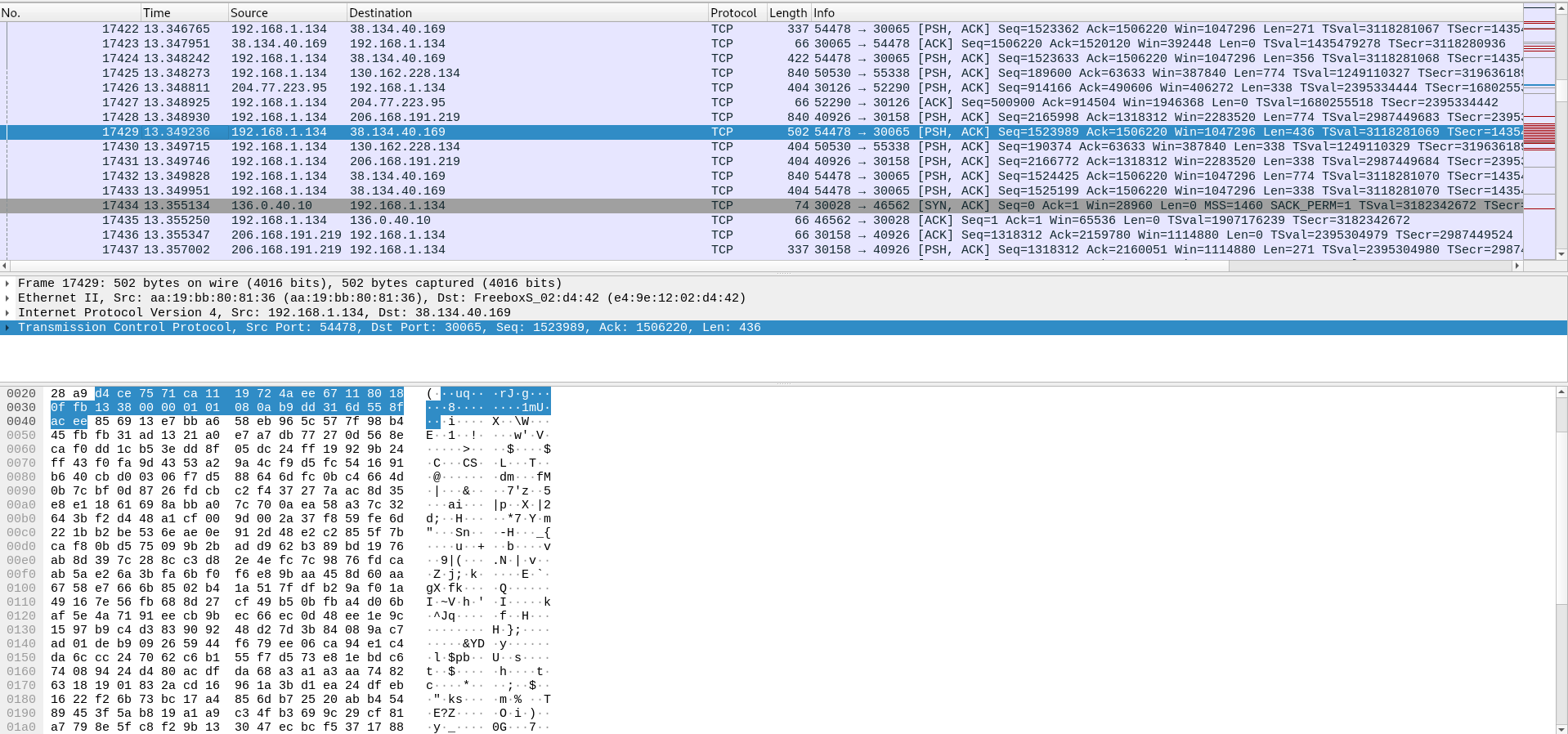 Le trafic ne correspond à rien de connu, en tout cas à rien de connu de wireshark !